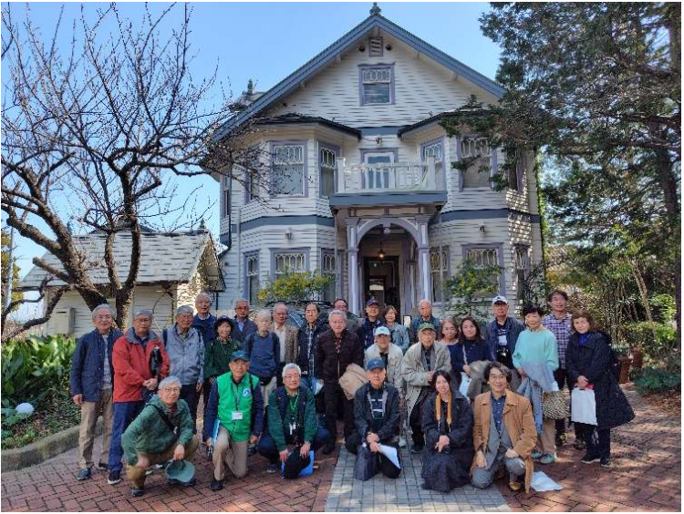 「大磯梅の名所めぐり」実施報告 2月28日に「大磯梅の名所めぐり」を開催して、27名の皆さんにご参加いただきました。当日は穏やかな天候にも恵まれて、梅を鑑賞しながらゆったりと散策をしました。集合後に大磯迎館(国の登録有形文化財の洋館レストラン)でビールやワインを飲みながらランチをいただき、皆さんと和やかに懇親をしました。 散策は3班に分かれて、島崎藤村ゆかりの地福寺からスタート。「明治記念大磯邸園」で公開中の旧大隈重信邸・旧陸奥宗光邸跡の邸宅では、ひな人形が飾られ梅とお雛様で春を満喫しました。 その後、旧東海道から海側に一筋入ったところにある鎌倉古道を探索。古の旧道沿いに明治の偉人の別荘跡があり、当時の面影を思い起こしながらゆっくりと大磯の佇まいを堪能しました。 また旧吉田邸では満開の梅“楊貴妃”に見入りました。梅の多くは送梅となっていましたが、うららかな陽気の中での散策は心地よいものでした。 今回もNPO法人大磯ガイド協会の奥井泰弘氏(S53年卒 経営)には周到な準備をしていただき、大変有意義で楽しい散策ができましたことに感謝申し上げます。