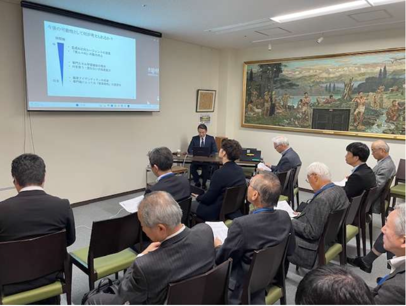 緻密なフィールドサーベイ、意識調査、実態把握に基づき、1 時間という短い間でしたが、簡潔にかつテータに基づく論理的なご説明をいただきました。久々にトップ研究員の研究成果を拝聴し、大いに感銘を受けました。しかしながら、出席者からは論旨あいまいな発言や思い込みの自己主張もあり、事実や数値の分析に基づかない、?み合わない議論は一部出席者には不評でした。とはいえ、平成卒業の若い出席者はじめ、柔軟な思考の方々には大変好評で、現在、一桁しかいない平成や令和の卒業生の会員増強には、こうしたテーマで講演会などを続けていくことも多いに意義あることと感じた次第です。